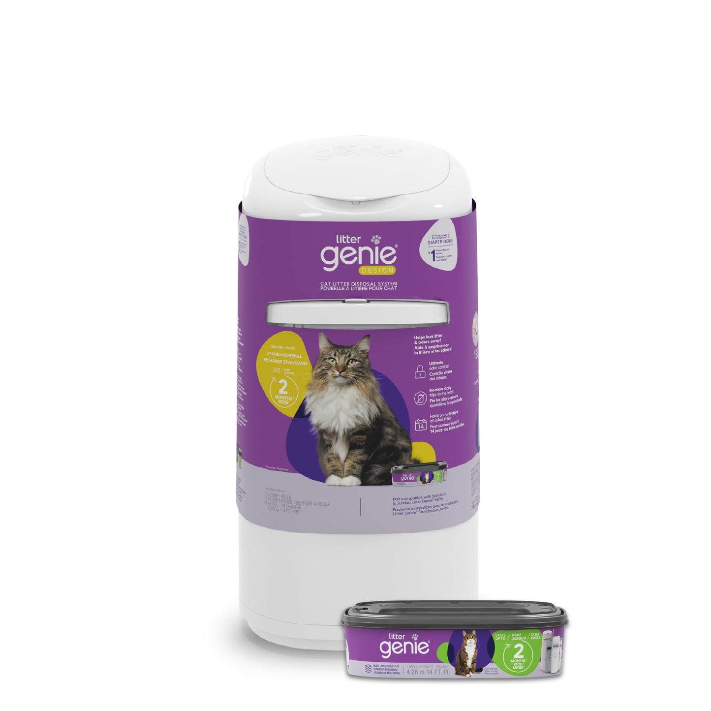 Enjoy a fresher home with the Litter Genie® Design Pail, the ultimate white, compact, and stylish solution for hassle-free cat litter disposal and fewer trips to the trash.