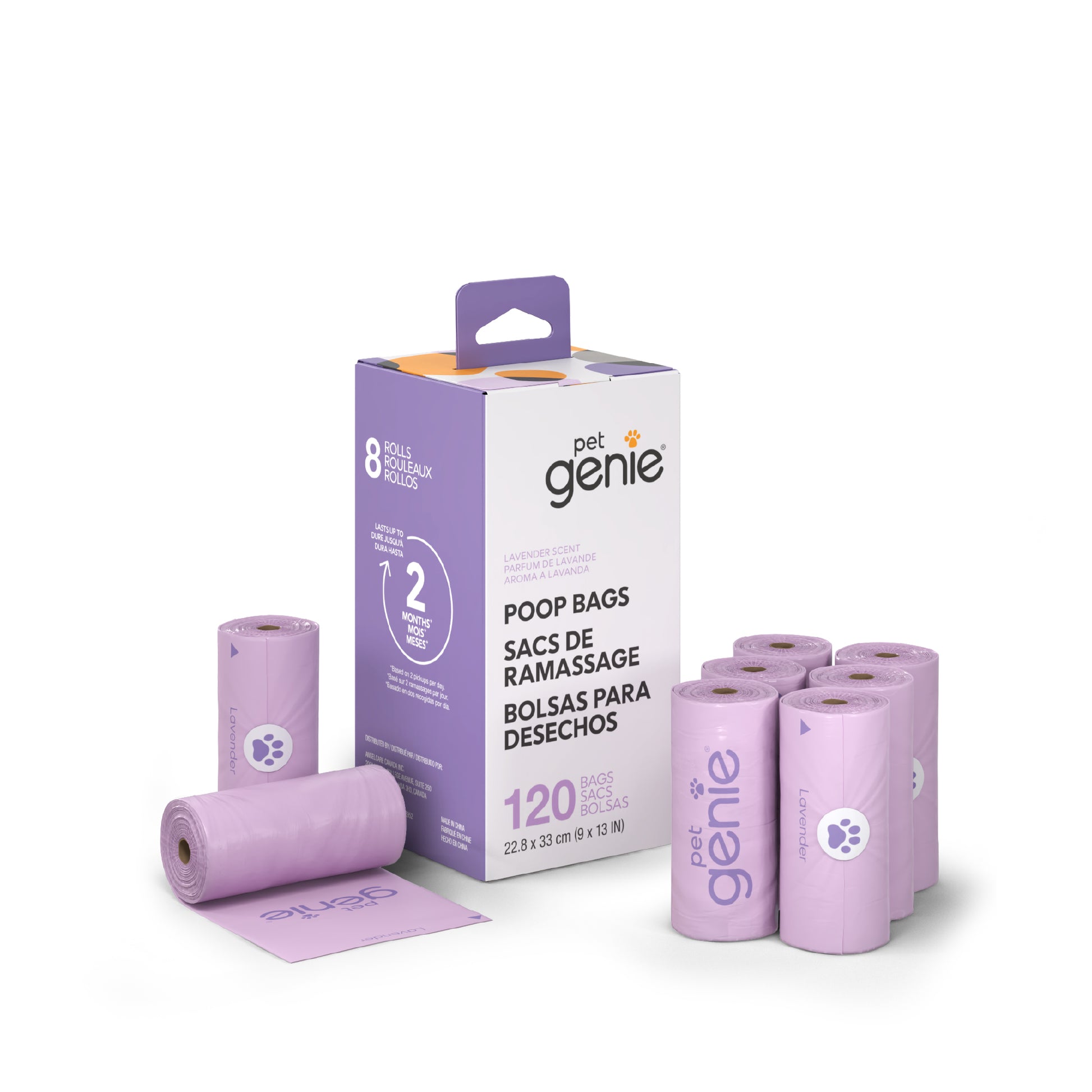 Never worry about cleaning up after your pet again with the Pet Genie® Poop Bags for dogs. Lavender-scented, leak-proof, and made with 65% recycled plastic.